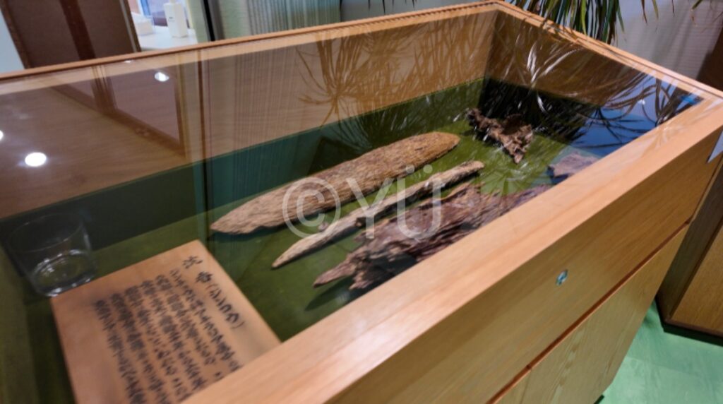 残されていること。島民が香木を知らずに薪として燃やしたところ、素晴らしい香りが遠くまで漂い、その香木が朝廷に献上されたそう。